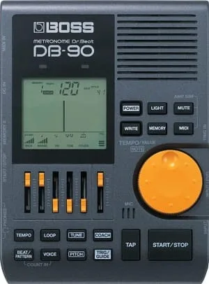 The Boss DB-90 includes rhythm coach functions designed to help musicians improve their timing and rhythm skills.